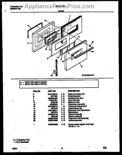 Parts for Frigidaire GEF311WAWA: 05 - Door Parts