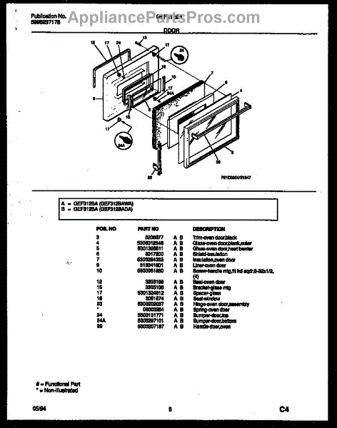 Parts for Frigidaire GEF312BAWA: 05 - Door Parts