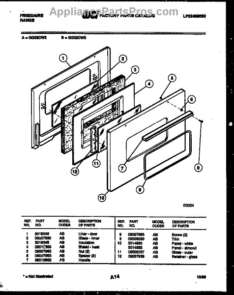 Parts for Frigidaire GG32CL2: 04 - Door Parts