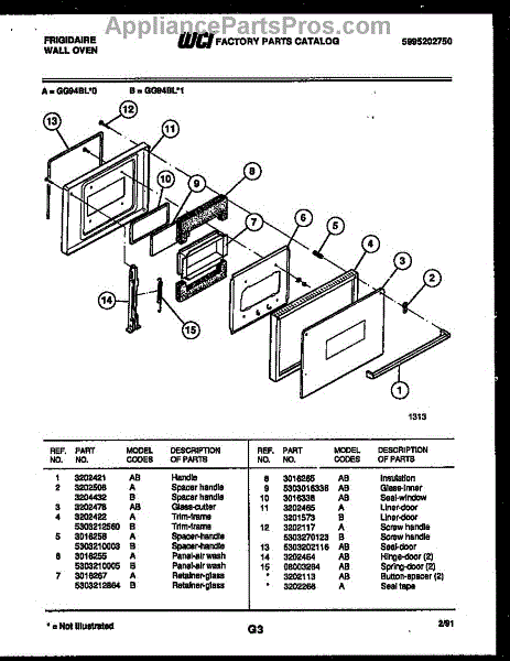 Parts for Frigidaire GG94BLW1: 04 - Door Parts
