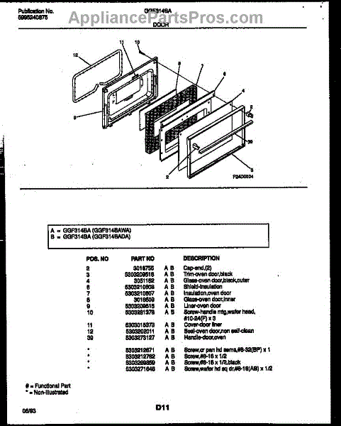 Parts for Frigidaire GGF314BAWA: 06 - Door Parts