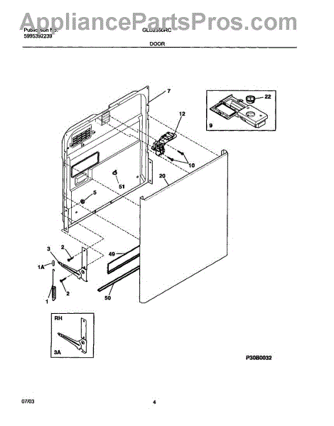 The Door Spring is an OEM part for Frigidaire dishwashers. It provides smooth opening and closing of the dishwasher door by maintaining tension and balance. This spring ensures that the door moves gently and stays in place when opened, preventing slams that could lead to damage or injury.