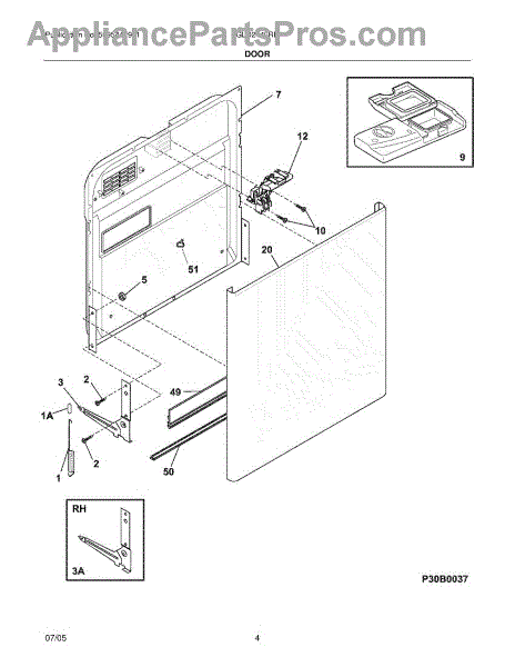 The Side Mount Kit is an OEM replacement part for Frigidaire dishwashers. It contains mounting brackets, screws, and other hardware required to securely install the dishwasher against cabinetry in a side-by-side configuration. Proper attachment is necessary for stability and safety during operation.