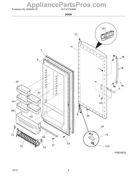 Parts for Frigidaire GLFH21F8HWM: 03 - Door Parts