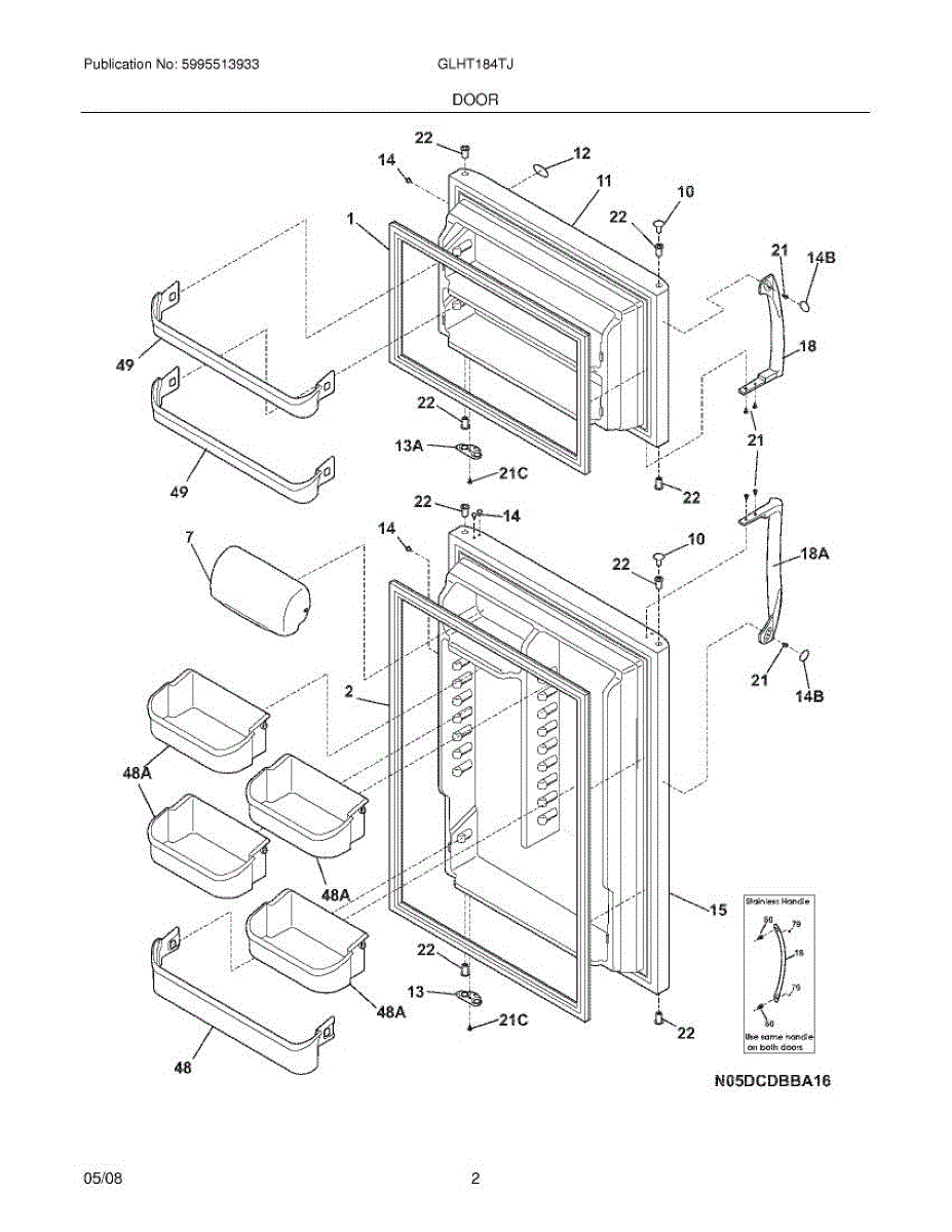 The Door Handle Set is an OEM part for Frigidaire refrigerators, ensuring a perfect fit and finish for your appliance. This set includes handles for both the refrigerator and freezer doors, designed to replace broken or worn-out handles, providing a secure and comfortable grip for opening and closing the doors.