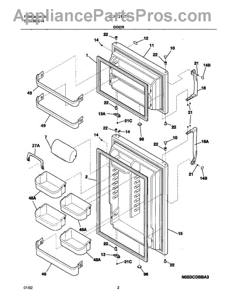 The Freezer Door Shelf Bin is an OEM replacement part for Frigidaire refrigerators. It provides adjustable storage on the inside of the freezer door with removable bin shelves. These bins maximize storage potential in the limited door space through customizable shelving. Causes of a bad Door Shelf Bin can include shelf breakage from heavy loads, damage to supporting rails or walls of the bin inhibiting proper shelf attachment and use, or broken/missing bin walls reducing structural integrity. Symptoms of a bad Door Shelf Bin include: