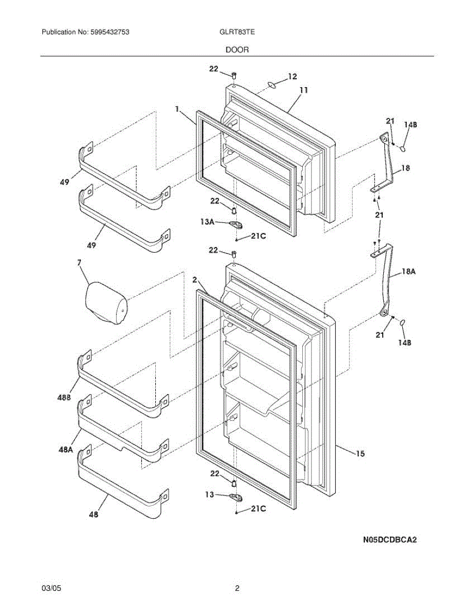 Nylon bearing that fits on the door hinge pivot point. Replace when worn, cracked, or missing to prevent door sagging and alignment issues.