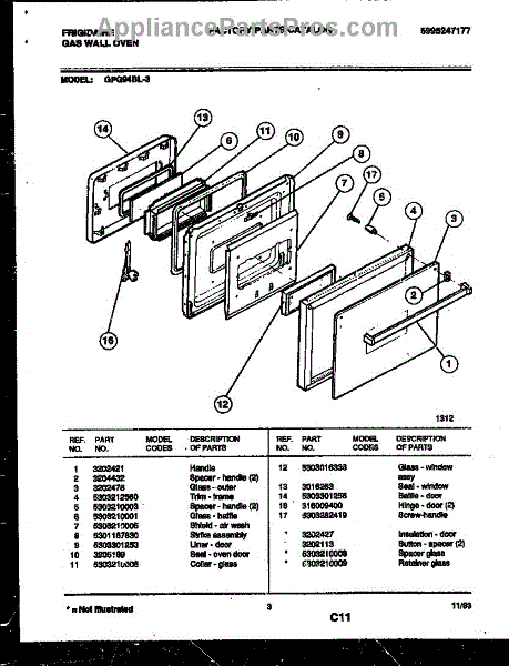 Parts for Frigidaire GPG94BL3: 03 - Door Parts