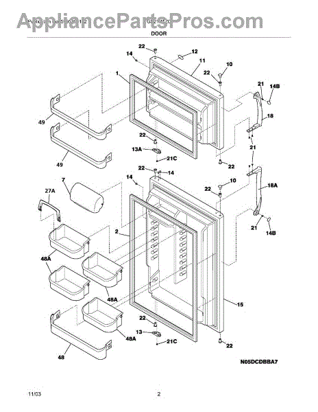 The Door Bin is an OEM part for Frigidaire refrigerators. It provides additional storage space on the refrigerator door, allowing for the convenient organization of smaller items such as condiments, beverages, and jars. This bin is designed to fit securely into the slots on the refrigerator door, making it easy to remove and clean when necessary.