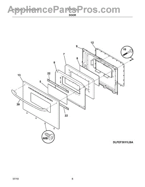 The Screw is an OEM part for Frigidaire ovens. This screw secures the oven door handle to the door, ensuring it remains firmly attached and stable during use.