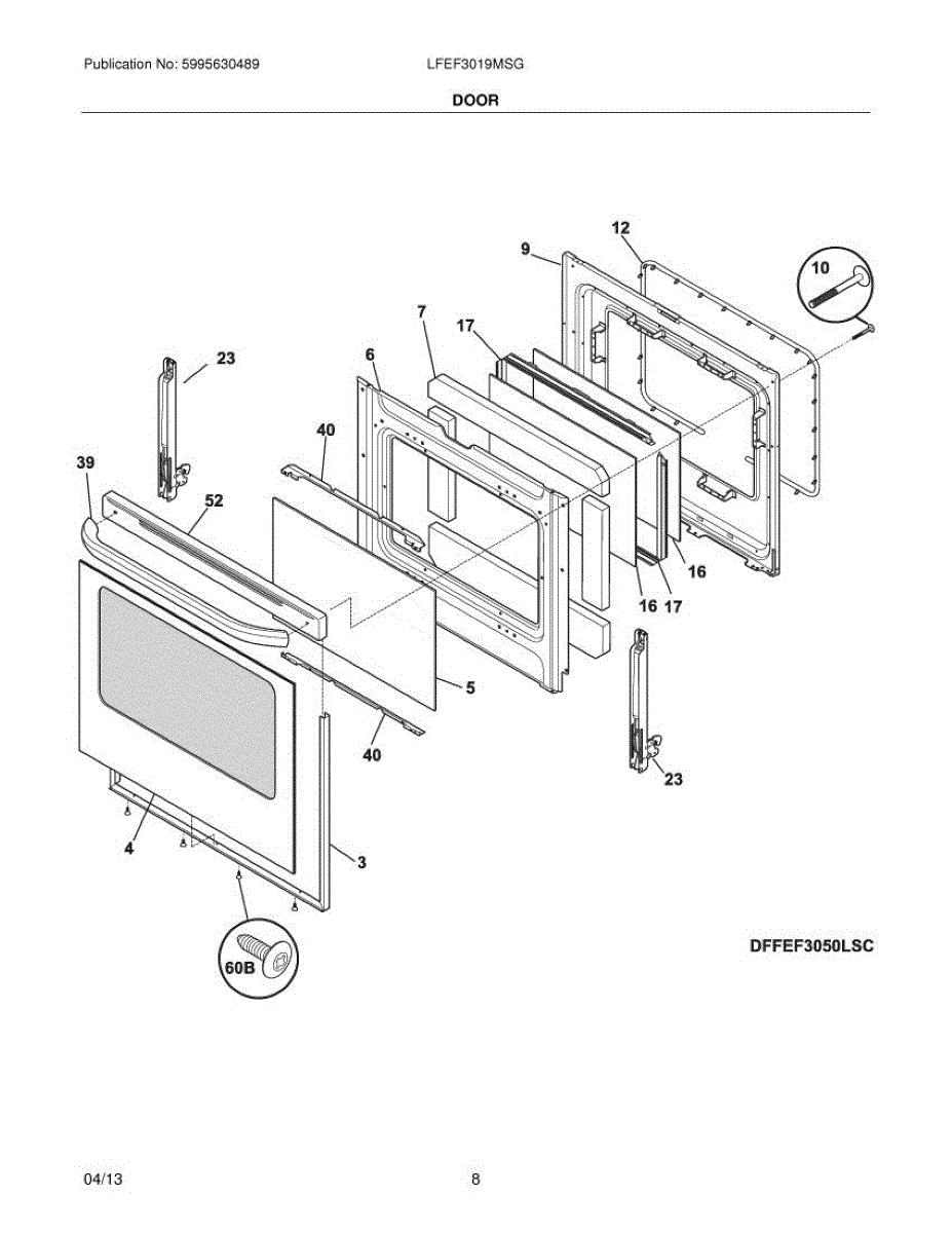 Restores smooth door operation and proper seal. Replace when door sags, won't close flush, or hinge is bent. Confirm fit with your model number.