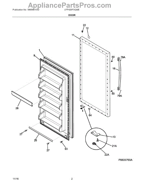 This is an outer door panel that is used with refrigerators. The outer panel is the part of the freezer that users have contact with when using the appliance. It works in tandem with an inner door panel to keep the freezer cold. The outer door panel also offers protection from impact associated with the freezer. It's made of durable materials but can experience wear and tear or damage and require replacement.When replacing the outer door panel of the freezer, make sure the appliance is unplugged. Remove the trim and the magnetic caps on the hinge side of the freezer. Keeping the door closed, push on the panel from the hinge side to disengage it from the brackets. The panel will come off and can be placed to the side. The new outer door panel can be placed in the same location before reassembling the door. Plug the freezer back in before use.This is a genuine OEM replacement component that has been directly sourced from the manufacturer. The outer door panel is sold on an individual basis. The part is made to be used with freezers by Crosley, Frigidaire, and Kenmore.