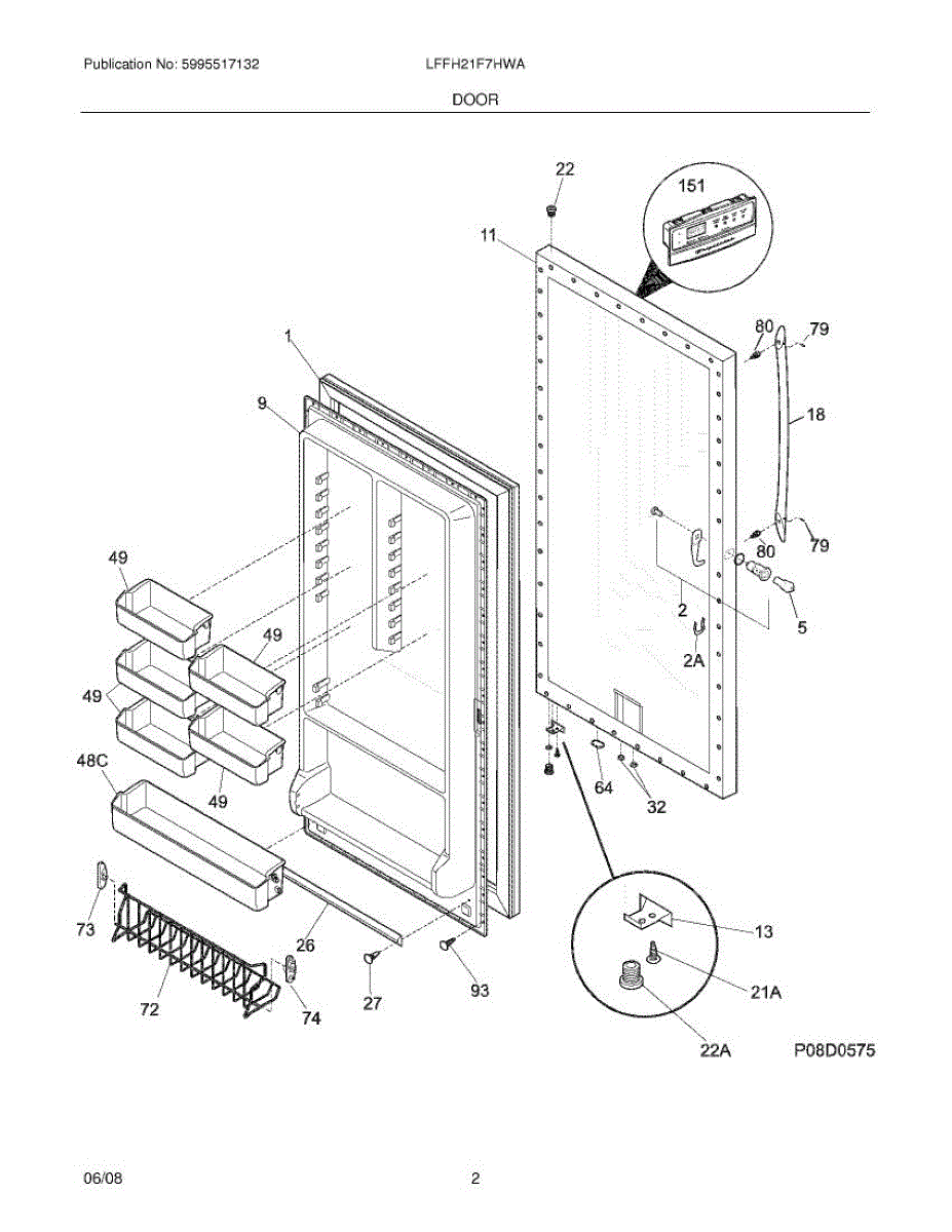 This inner door panel replaces a damaged or worn interior door surface to restore proper bin support and the refrigerator's finished appearance. It provides a stable mounting surface for door bins and internal hardware. What it does