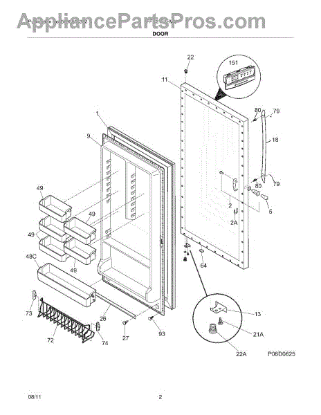 This inner door panel replaces a damaged or worn interior door surface to restore proper bin support and the refrigerator's finished appearance. It provides a stable mounting surface for door bins and internal hardware. What it does