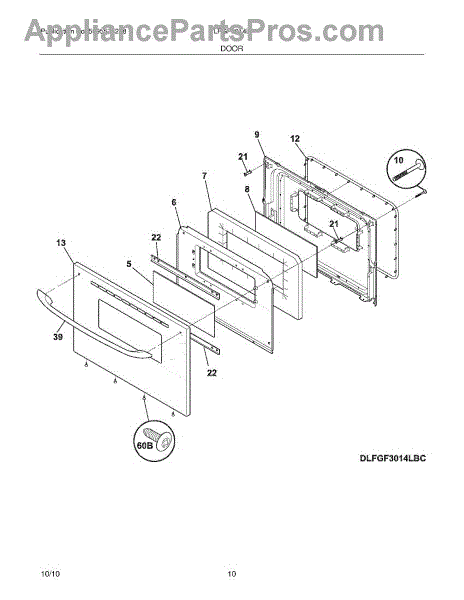 Parts for Frigidaire LFGF3014LWC: 11 - Door Parts
