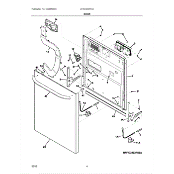 The Door Cable is an OEM part for Frigidaire dishwashers. It is a component that connects the dishwasher door to the frame, controlling movement when accessing the tub interior.