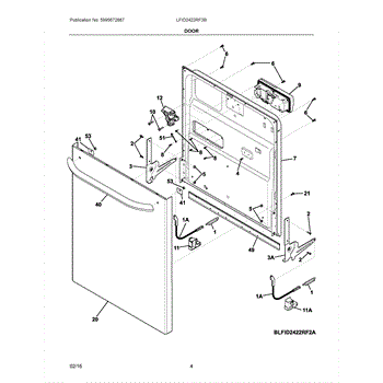 The Door Cable is an OEM part for Frigidaire dishwashers. It is a component that connects the dishwasher door to the frame, controlling movement when accessing the tub interior.