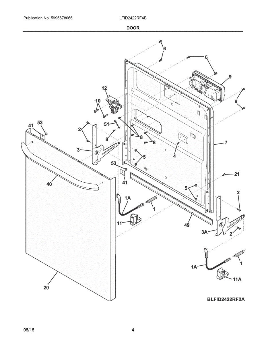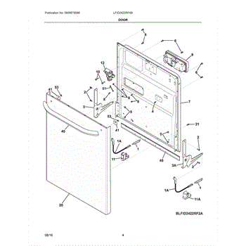The Door Cable is an OEM part for Frigidaire dishwashers. It is a component that connects the dishwasher door to the frame, controlling movement when accessing the tub interior.