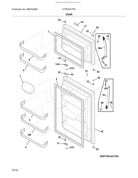 Parts for Frigidaire LFTR1821TF3: Door Parts