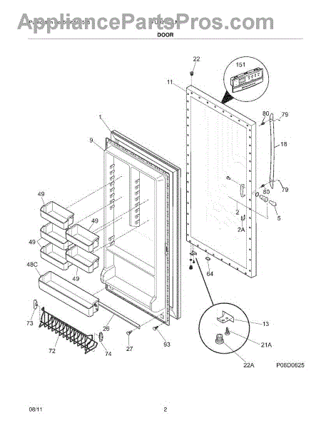 This inner door panel replaces a damaged or worn interior door surface to restore proper bin support and the refrigerator's finished appearance. It provides a stable mounting surface for door bins and internal hardware. What it does