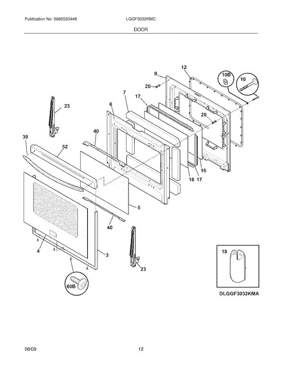 Parts for Frigidaire LGGF3032KMC: 11 - Door Parts