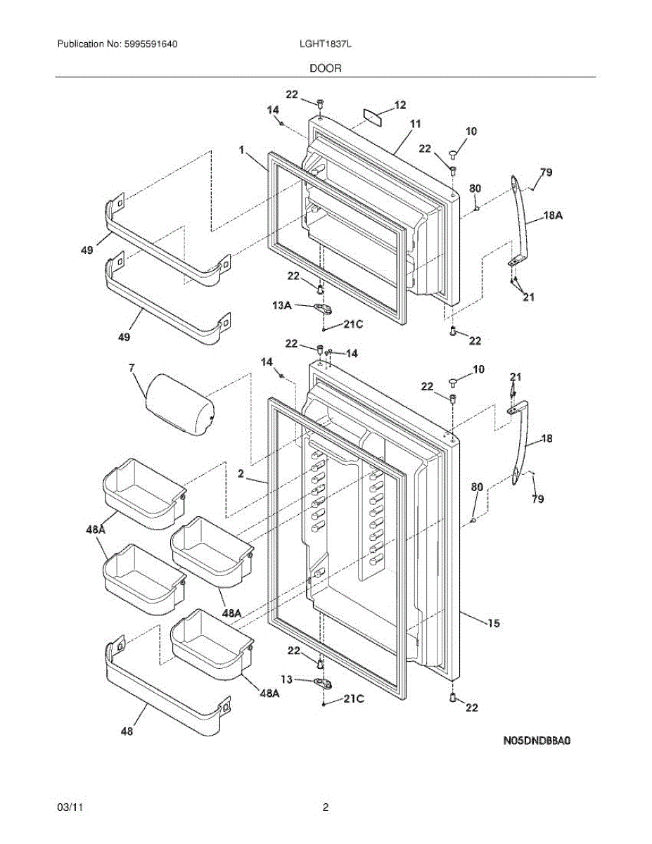 Replace this door bin if it becomes cracked, warped, or no longer fits securely in the door slots. Over time, exposure to varying temperatures and frequent use can cause the plastic to weaken and break.
