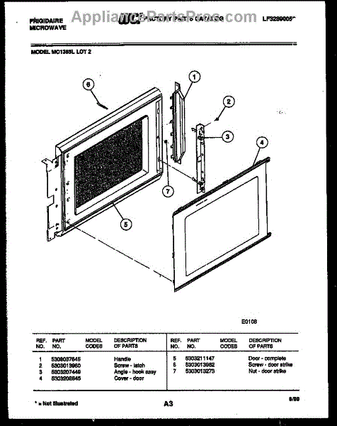 Parts for Frigidaire MC1385L2: 03 - Door Parts