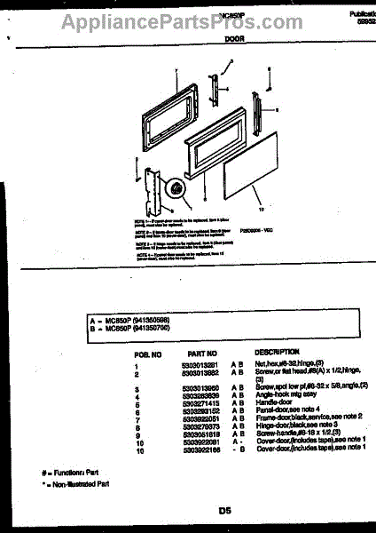 Parts for Frigidaire MC850P10: 03 - Door Parts