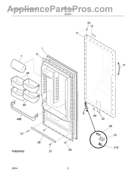 The Door Bin is an OEM replacement part for Frigidaire refrigerators. It provides interior storage by hanging securely inside the refrigerator door. The bin measures approximately 13 inches wide at its longest point, 5 inches deep, and 4 inches tall. Causes of a bad door bin can include damage from overloading or improper handling. The plastic material can become cracked or warped from stress over time. Symptoms of a failed door bin include: