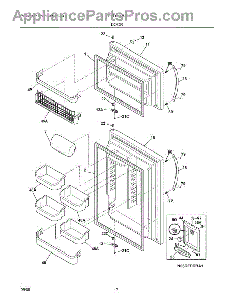 The Freezer Door Shelf Bin is an OEM replacement part for Frigidaire refrigerators. It provides adjustable storage on the inside of the freezer door with removable bin shelves. These bins maximize storage potential in the limited door space through customizable shelving. Causes of a bad Door Shelf Bin can include shelf breakage from heavy loads, damage to supporting rails or walls of the bin inhibiting proper shelf attachment and use, or broken/missing bin walls reducing structural integrity. Symptoms of a bad Door Shelf Bin include: