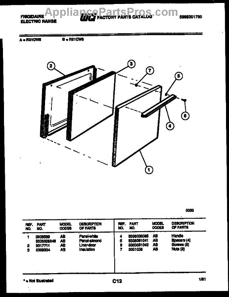 Parts for Frigidaire R21CL5: 03 - Door Parts