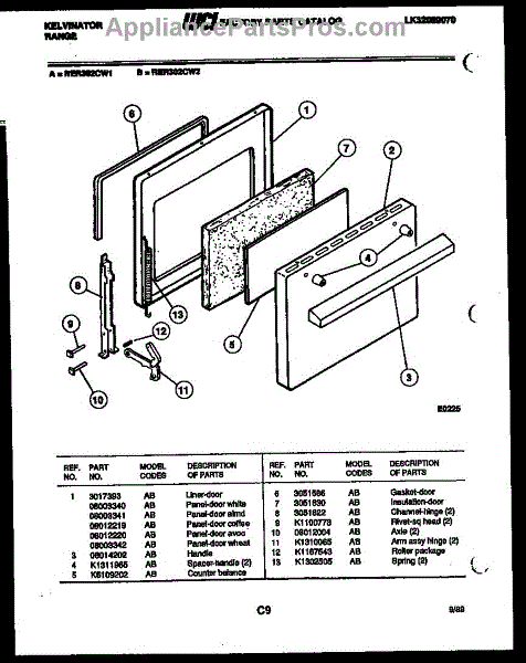 Parts for Frigidaire RER302CV1: 05 - Door Parts