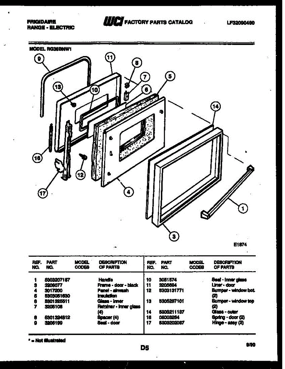 Parts for Frigidaire RG36BNW1: 03 - Door Parts