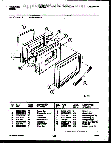 Parts for Frigidaire RG533MDW2: 02 - Door Parts