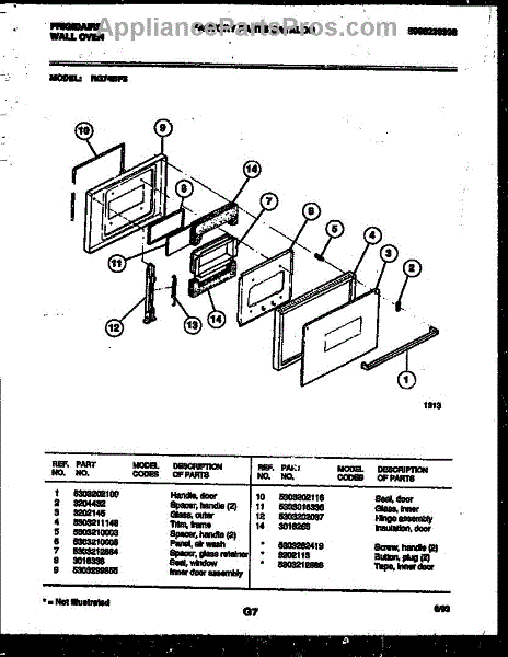 Parts for Frigidaire RG74BF3: 03 - Door Parts