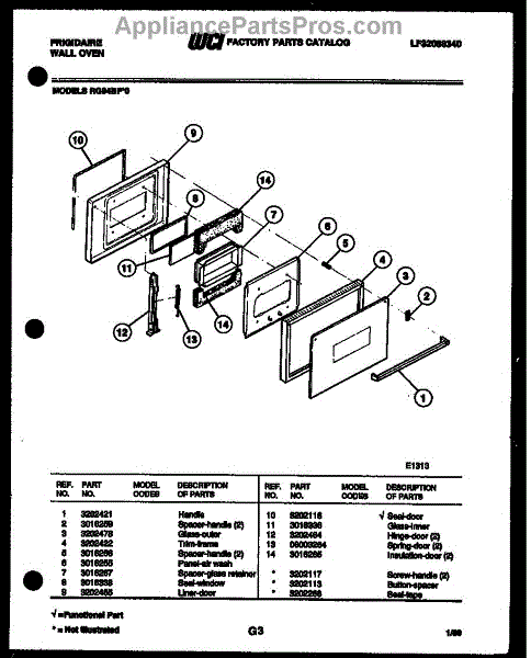 Parts for Frigidaire RG94BFB0: 03 - Door Parts