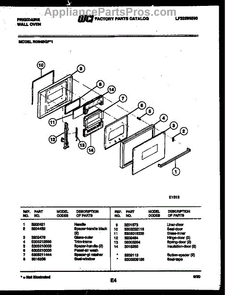 Parts for Frigidaire RG94BFB1: 03 - Door Parts