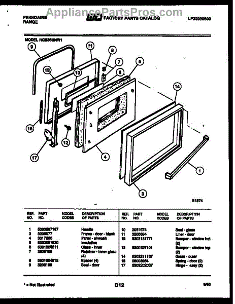 Parts for Frigidaire RGS36BNW1: 02 - Door Parts