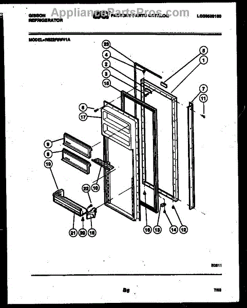 Parts for Frigidaire RS22F8WV1A: 02 - Door Parts