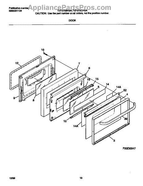 Parts for Frigidaire TEF375BHBA: 05 - Door Parts