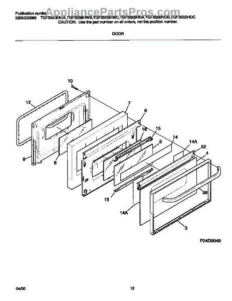 Parts for Frigidaire TGF355BHDA: 06 - Door Parts