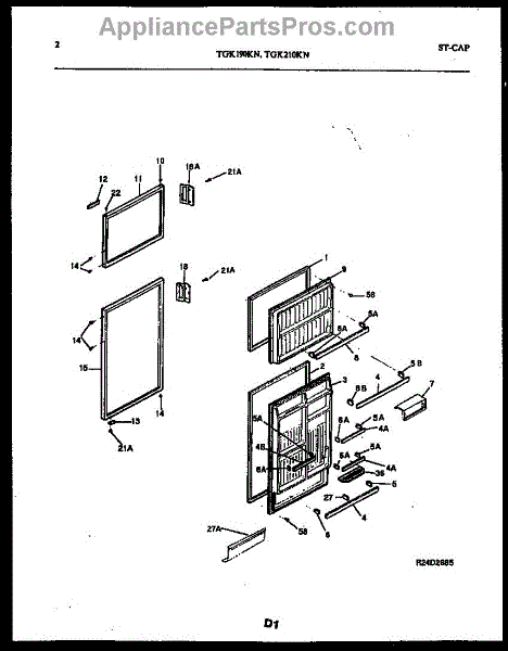 Parts for Frigidaire TGK190KN0W: 02 - Door Parts