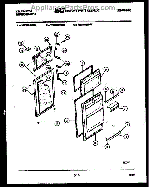 Parts for Frigidaire TPK160EN3F: 02 - Door Parts