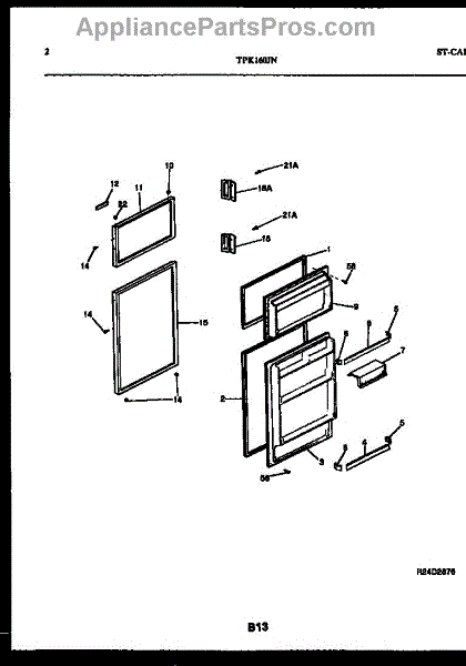 Parts for Frigidaire TPK160JN3W: 02 - Door Parts