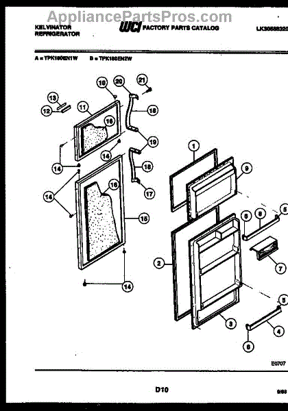 Parts for Frigidaire TPK180EN1V: 02 - Door Parts