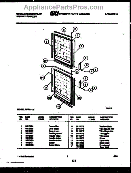 Parts for Frigidaire UFF111IE: 02 - Door Parts