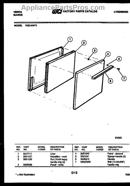 Parts for Frigidaire VG21AW3: 03 - Door Parts