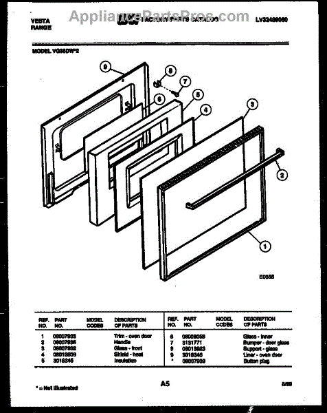 Parts for Frigidaire VG36DW2: 05 - Door Parts