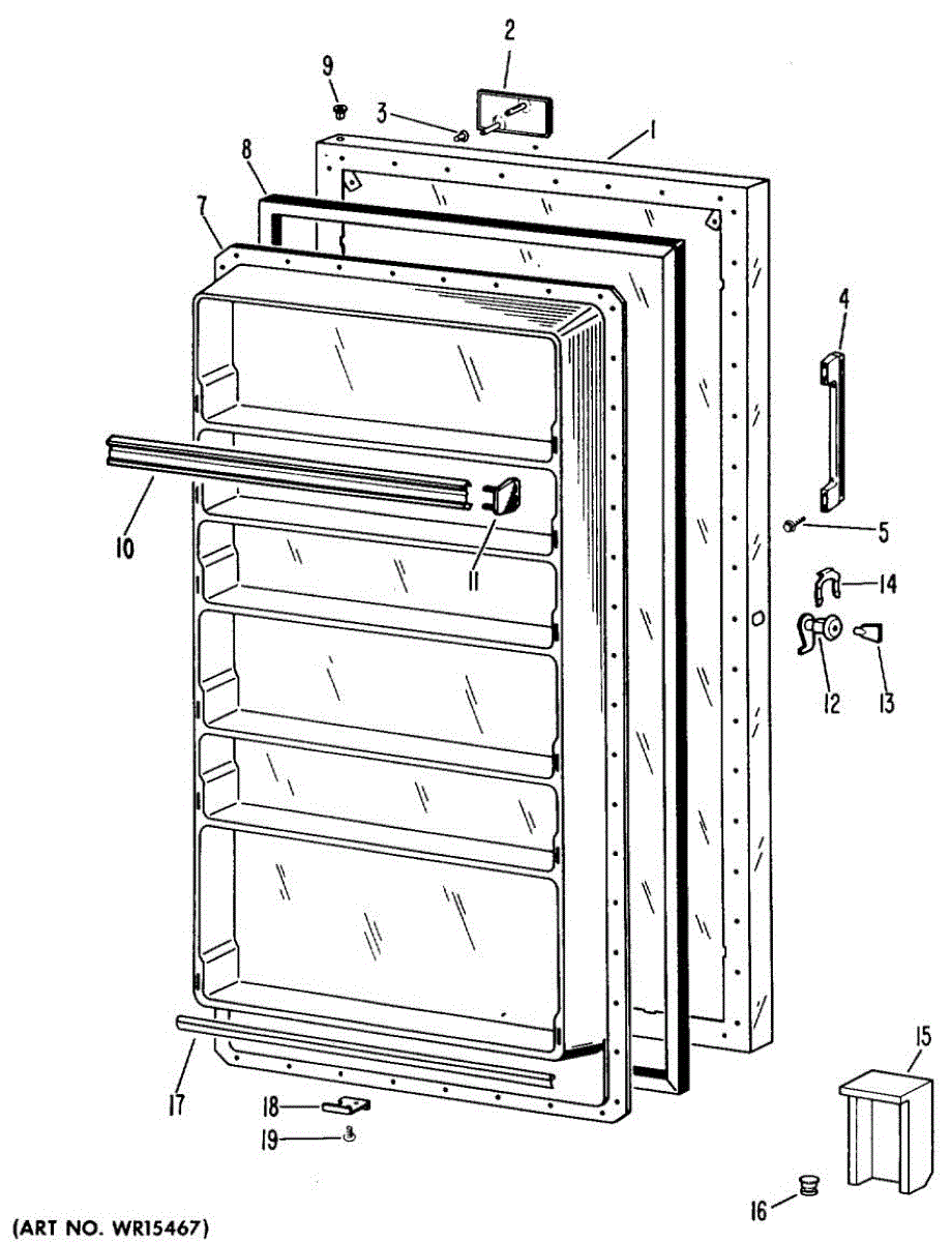 Hardware fasteners for securing refrigerator door panels and components. Includes screws, nuts, and washers for assembly. Replace missing or stripped pieces.