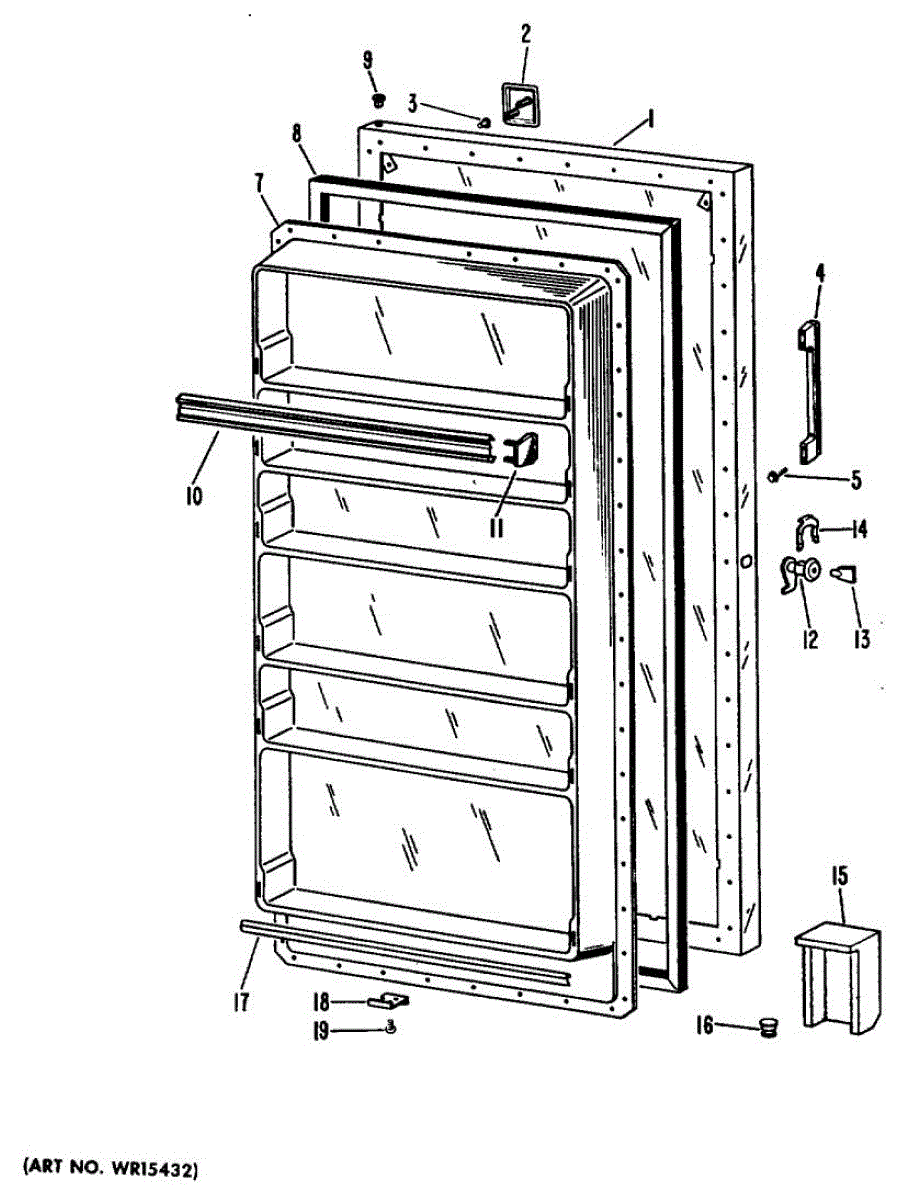 Hardware fasteners for securing refrigerator door panels and components. Includes screws, nuts, and washers for assembly. Replace missing or stripped pieces.